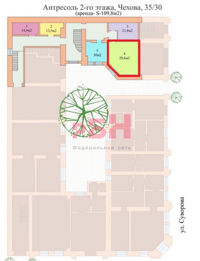 Сдается современное офисное помещение с ремонтом в активном Центре города площадью 29,6 кв.м по адресу г. Ростов-на-Дону, пр. Чехова, 35/30